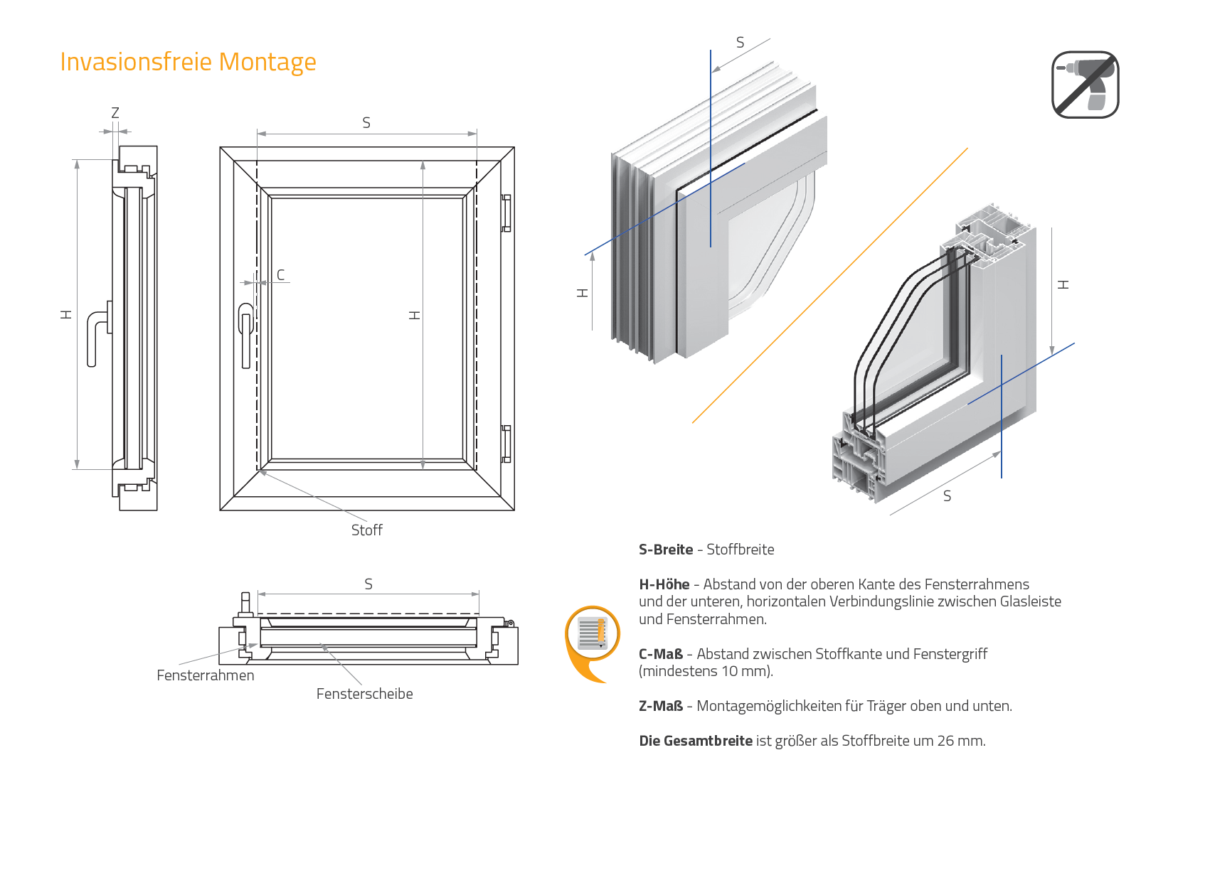 Anleitung für das Messen eines Rollos bei einer Montage direkt auf dem Fensterflügel