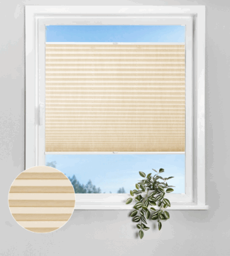 Diese Plissees bestehen aus gefaltetem Stoff, der sich flexibel nach oben oder unten bewegen lässt. Sie bieten einen einfachen Sicht- und Sonnenschutz und sind für nahezu alle Fenstergrößen geeignet.