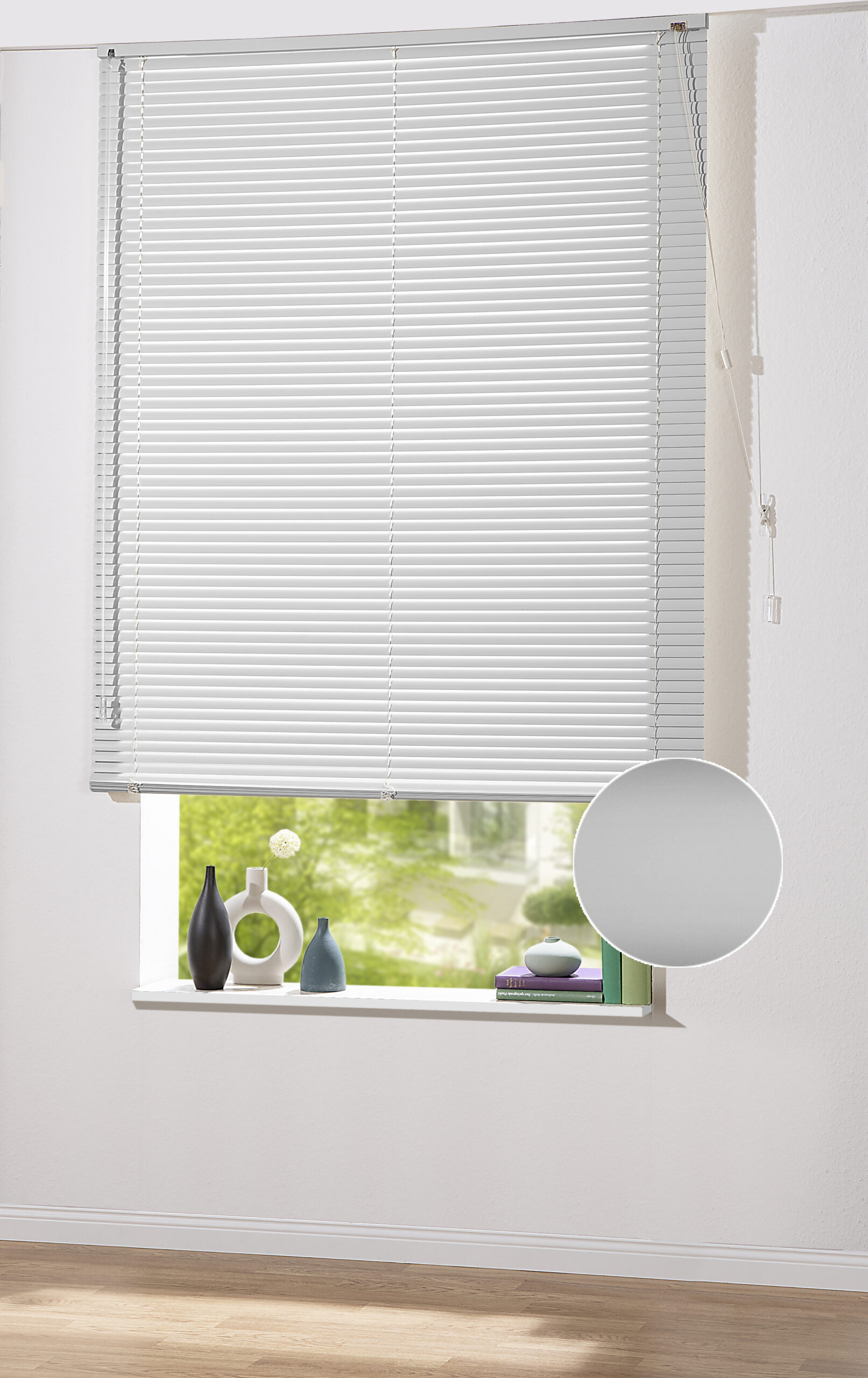 • ALU-JALOUSIE: Abdunkelnde Alu Jalousien für innen. Stufenloses Öffnen und Schließen der Jalousie durch die vormontierte Zugschnur, Lamellen werden mit dem Wendestab reguliert
