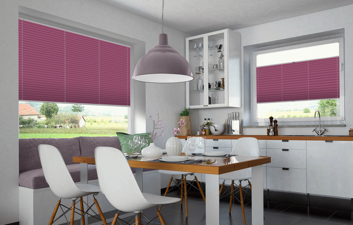 Mit Plissees können Sie jeden beliebigen Teil des Fensters sowohl von oben als auch von unten abdecken. Sehr praktisch, wenn sich der Lauf der Sonne tagsüber ändert oder Sie sich vor neugierigen Blicken schützen wollen. Im hochgezogenen Zustand nehmen Plissees kaum Platz im Fenster ein, sodass Sie bei Bedarf viel Sonnenlicht in Ihre Räume lassen können.