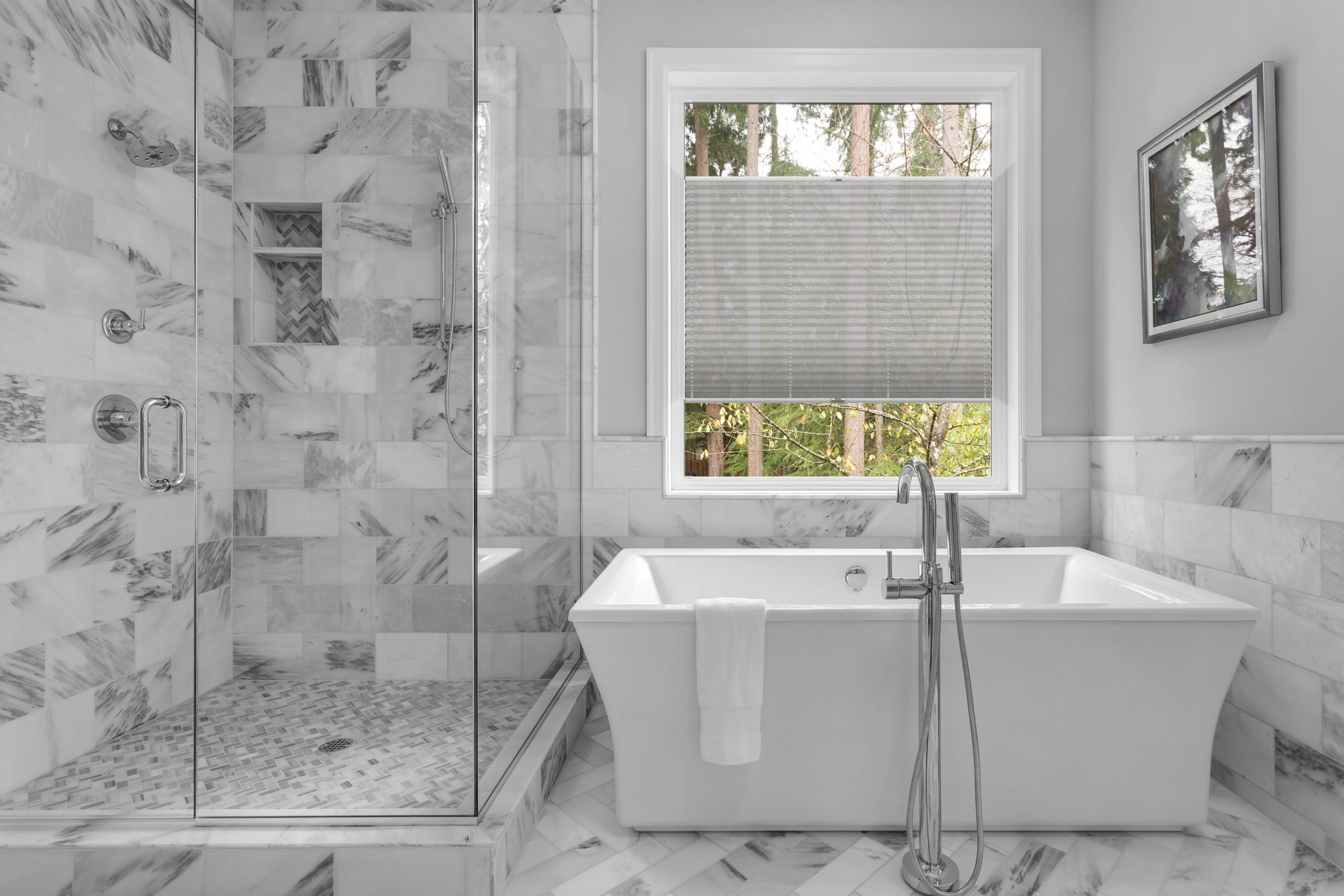Mit Plissees können Sie jeden beliebigen Teil des Fensters sowohl von oben als auch von unten abdecken. Sehr praktisch, wenn sich der Lauf der Sonne tagsüber ändert oder Sie sich vor neugierigen Blicken schützen wollen. Im hochgezogenen Zustand nehmen Plissees kaum Platz im Fenster ein, sodass Sie bei Bedarf viel Sonnenlicht in Ihre Räume lassen können.