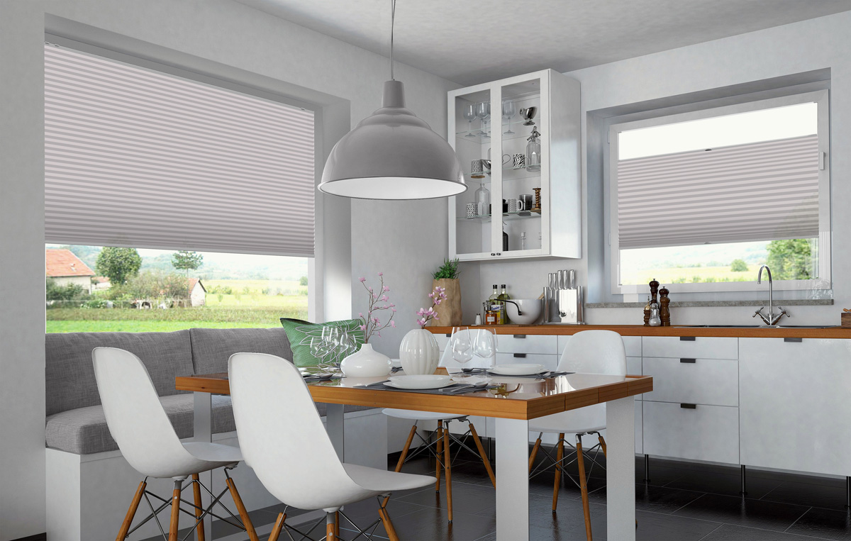 Mit Plissees können Sie jeden beliebigen Teil des Fensters sowohl von oben als auch von unten abdecken. Sehr praktisch, wenn sich der Lauf der Sonne tagsüber ändert oder Sie sich vor neugierigen Blicken schützen wollen. Im hochgezogenen Zustand nehmen Plissees kaum Platz im Fenster ein, sodass Sie bei Bedarf viel Sonnenlicht in Ihre Räume lassen können.